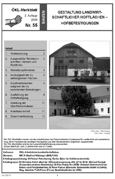 Regelwerke ÖKL Merkblatt 55 Hofflächen in der Landwirtschaft Mitarbeit des Forums Qualitätspflaster an der 2. Auflage des Merkblattes 55 des Österreichischen Kuratoriums für Landtechnik und Landentwicklung, das über die Gestaltung landwirtschaftlicher Hofflächen – 14. April 2013